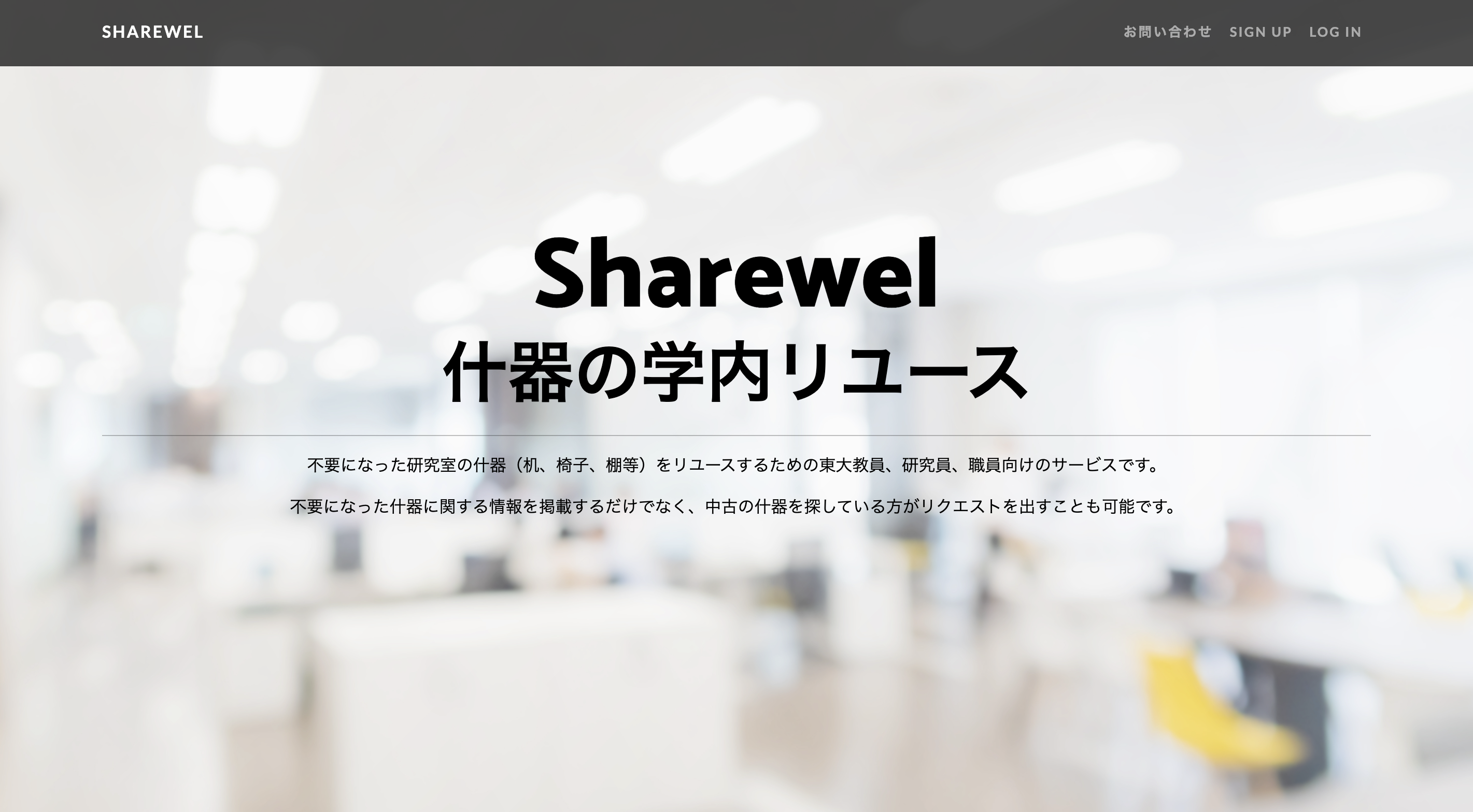 ShareWelは、モノとコトのシェアリング・リユースのための東京大学発のサービスです。